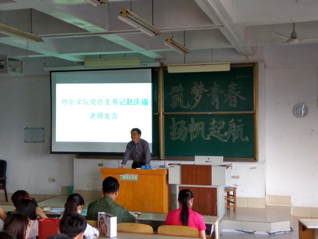 最后,党总支书记赵庆福老师上台发表讲话。赵书记首先表示了对往届学生会工作的肯定和感谢,随后对下届学生会工作提出了新的建议。一方面是要增强凝聚力,另一方面是要树立良好的学生干部形象。其中,凝聚力的提高包括思想、文化、组织、服务等几个方面。赵书记强调要树立良好的学生干部形象,并提出了树立良好形象的五个方面:政治坚定团结统一、队伍精干素质优良、与时俱进分发进取、不图虚名求真务实、视野开阔心胸宽广。随后,赵书记表达了对2016届学生会成员在考研和人生道路上的美好祝愿和对新一届学生会成员的期待。赵书记充满信心,坚信物电学院学生会可以越来越强大。同时,他也希望学生会成员可以不断加强自身建设,扎实工作,认真学习,更好地服务物电学院。