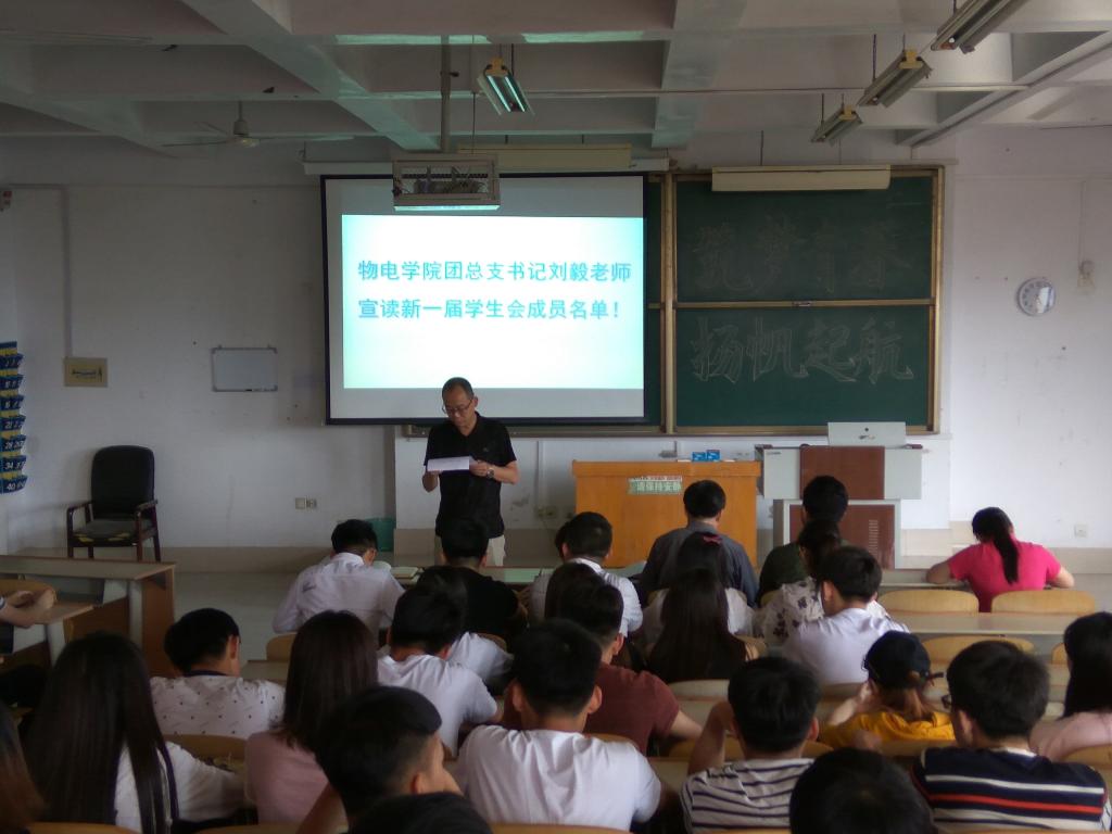 5月16日,蓝莓视频于求真楼4008教室举办了2017年学生会换届大会。党总支书记赵庆福、党总支副书记冯琨、物电学院全体辅导员老师出席本次大会,所有学生会成员参加此次大会。