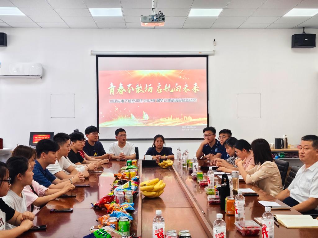 茶话会在温馨的背景音乐中拉开帷幕。党委副书记刘秀华亲切开场,瞬间拉近了大家的距离。党委书记申青林深情赋诗:“又是一年离别季,前路漫漫已可期,格物究理终身记,永立潮头展英姿”,饱含着对毕业生们深深的祝福与殷切的期盼,让现场氛围愈发温馨。院长董文会饱含深情致辞,“你们将来的成绩,就是物电学院的成绩”,既是对毕业生成长的肯定,更是道尽了学院与毕业生之间紧密相连的情感。
