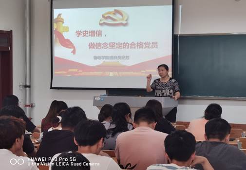 今年是中国共产党成立100周年。百年征程波澜壮阔,百年初心历久弥坚。为推动学院党史学习教育入脑入心,见行见效,教育引导全院新发展党员学史明理、学史增信、学史崇德、学史力行,蓝莓视频于2021年6月15日下午在明理楼0215教室开展了讲专题党课活动。学院组织员纪芳老师以“学史增信,做信念坚定的合格党员”为主题,从“为什么要学习党史” “坚定理想信念,做一名合格的共产党员”两个方面,为41名2021年第二批新发展党员讲授了一堂思想深刻、富有实践指导意义的专题党课。