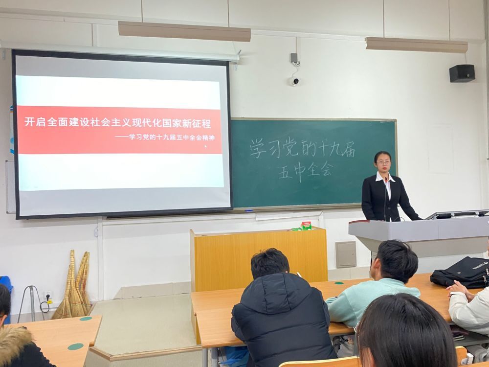 会议主要学习了我国开展全面建设社会主义现代化国家的新阶段与新目标、新理念与新部署、新变化与新格局,明确了党的十九届五中全会对“十四五”规划以及2035年远期的国民经济与社会发展的目标和方向。此次会议过程中,同学们认真听讲,专心记录,纷纷表示要认真学习全会精神,树立远大志向,不负韶华,奋发图强,以昂扬向上的精神奋进新时代。