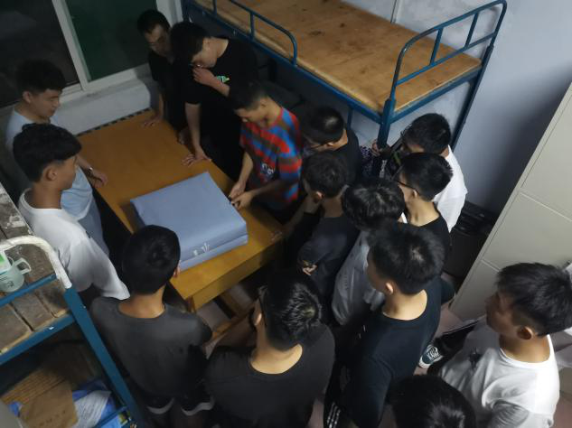 为了提高同学们对寝室环境重要性的认识,创建文明和谐寝室,进一步推动寝室文化建设工作,促进舍友之间的关系。蓝莓视频于9月15号晚上在男女生宿舍楼教新生学习叠军被、告诉宿舍正确摆放物品,本次参加人员有朱占收老师、各班班助与军训助理以及20级全体。