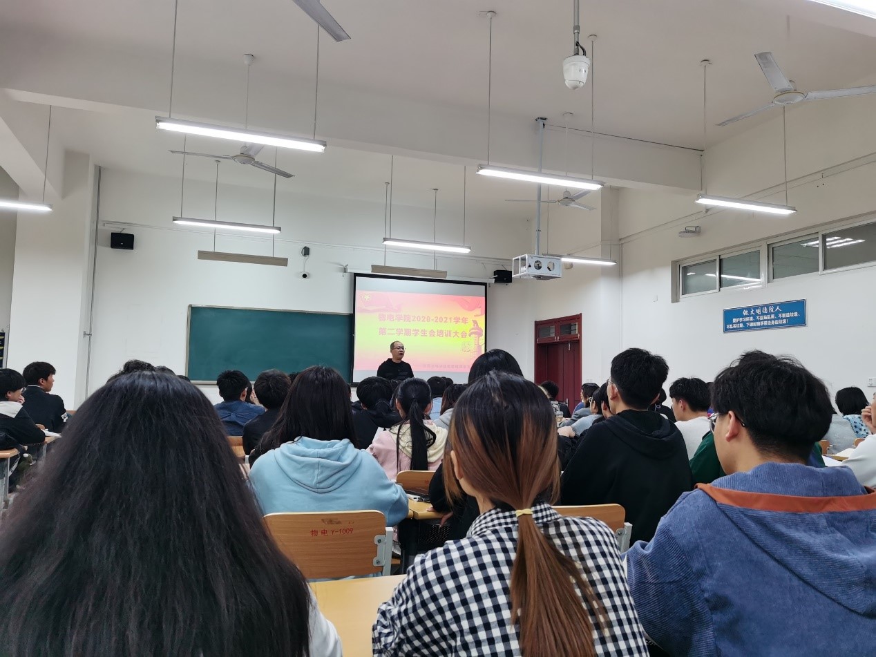 为总结第一学期的工作,顺利开展各项活动,推动我院学生工作更上一个台阶,4月22日,物电学院于明理楼0215召开春季学期院级学生会工作人员全体培训。刘毅老师主持,物电学院学生会全体成员参加。