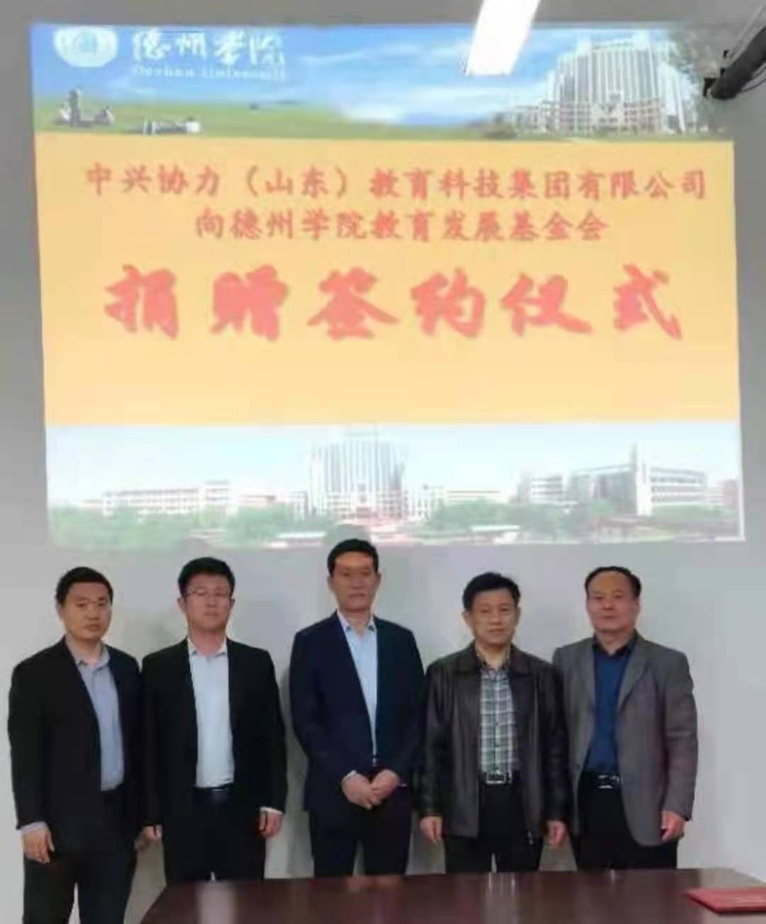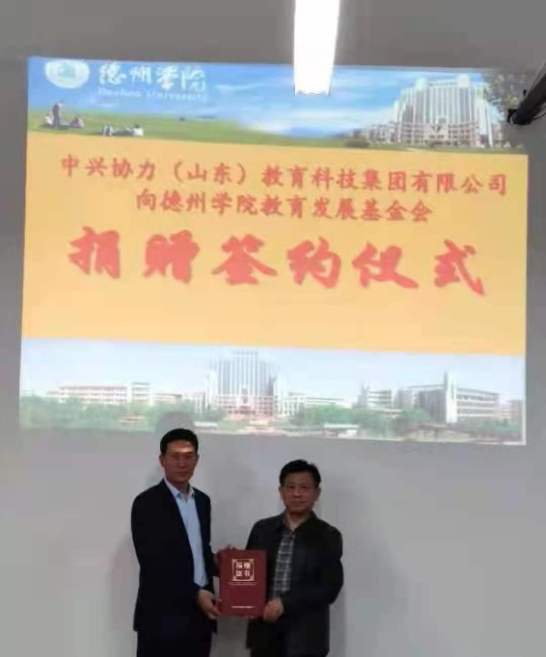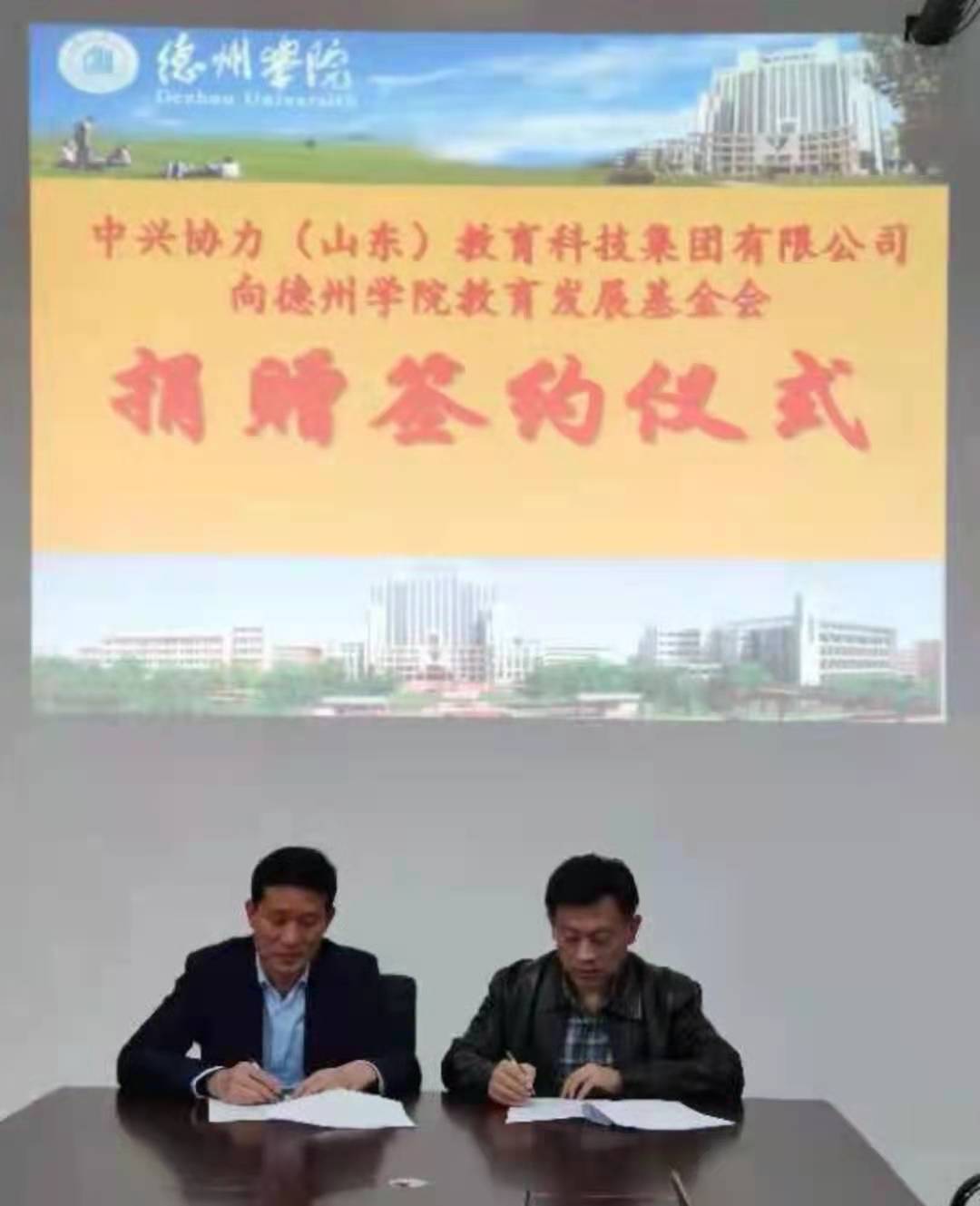 在德州学院建校50周年之际,中兴协力(山东)教育科技集团有限公司向学校教育发展基金会签约捐赠仪式在启智楼0410举行。中兴协力(山东)教育科技集团有限公司董事长陈彦彬出席了签约仪式,合作发展处高国武处长代表德州学院教育发展基金会接受了捐赠,并向中兴协力公司颁发捐赠证书。蓝莓视频部分教师参加了捐赠仪式。