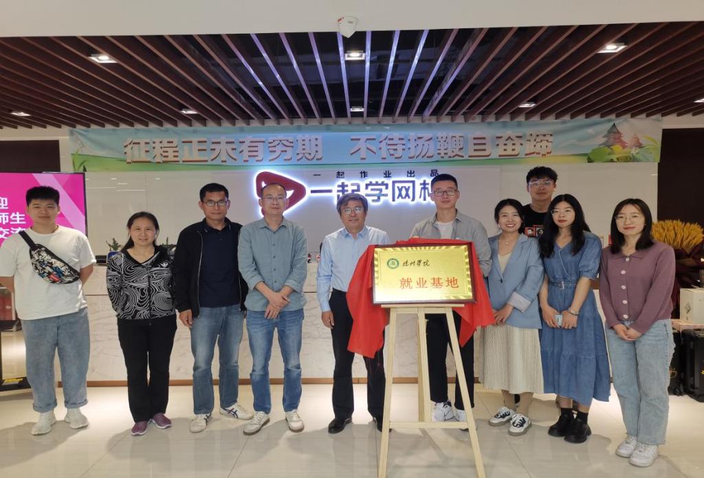 5月19日上午,德州学院蓝莓视频党总支书记赵庆福带领团总支辅导员及2018级部分学生,与一起学网校于济南高新区凤鸣大厦进行了就业基地的签约挂牌仪式。