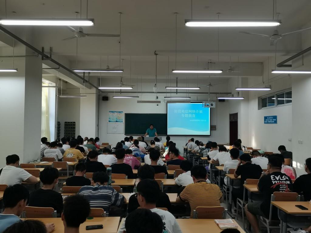 近年来,随着通讯技术的发展及多样化,电信诈骗手段和形式也开始呈现出多样化趋势,许多在校大学生由于缺乏相关知识而跌入陷阱、蒙受损失。为进一步提高学生预防网络诈骗的安全意识,6月4日下午,在明理楼0117,19级工程班班主任召开了相关主题班会。19级工程班全体同学参加了班会。