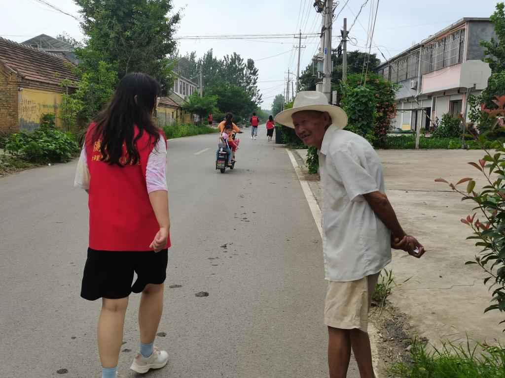 为大力弘扬中华民族尊老爱老传统美德和“奉献、友爱,互助、进步”的志愿者精神。7月20日,物电学院的大学生志愿者组建了“树孝亲风尚,立敬老美德”暑期社会实践团,赴枣庄市台儿庄区邳庄镇孙庄村开展暑期实践活动,为老人们送去慰问品,并开展志愿服务。