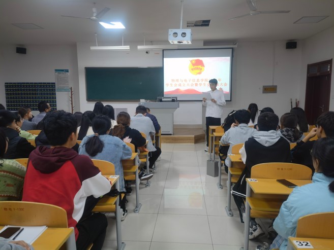 10月29日晚,物电学院在明理楼召开2021年学生会成立大会暨学生会换届大会。此次大会由主席团成员许世纪主持,物电学院领导老师及全体学生会成员参加了此次会议。