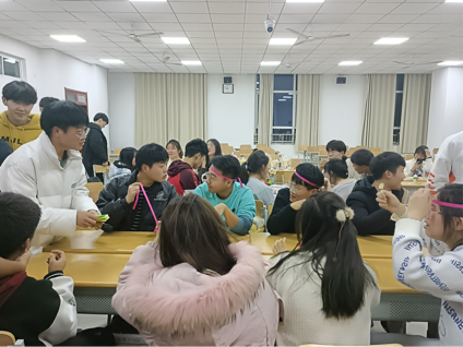 活动以游戏沙龙的形式展开,在各队确定完队名队歌队徽并展示后,由物电学院学生会文艺部成员带领各队先后进行了“你画我猜”、“卡牌接面粉”、“害你在心口难开”等游戏,此系列活动缓解了同学们的心理压力,拉近了同学们间的关系,有利于同学们团结互助,切实解决生活和学习中面对的难题。游戏结束后,文艺部的成员进行了闭幕式表演,获得了同学们的一致好评。