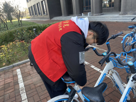 活动伊始,志愿者们向单车管理人员学习如何检查车辆存在的安全问题以及如何向单车平台报修单车故障。在此之后,志愿者们由负责人带队,前往单车停放点整理车辆。他们积极投入到志愿服务中,认真地检查每一辆单车。发现单车存在故障后,他们通过手机app向共享单车平台报修每一辆故障单车。即使顶着严寒,志愿者们的热情依旧高涨。