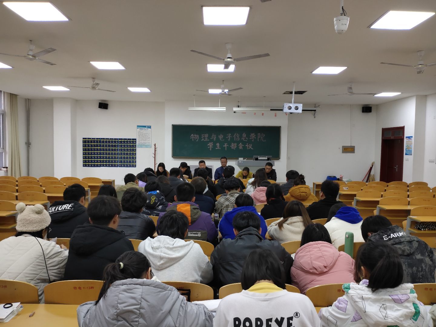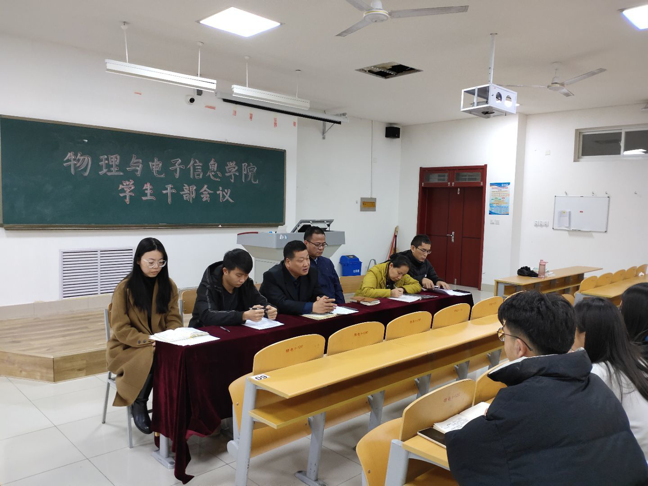 11月21日,蓝莓视频在明理楼 0126召开学生干部工作会议,物电学院党委副书记出席本次会议并讲话,学院各辅导员以及学生会各部门主要负责人参加本次会议。