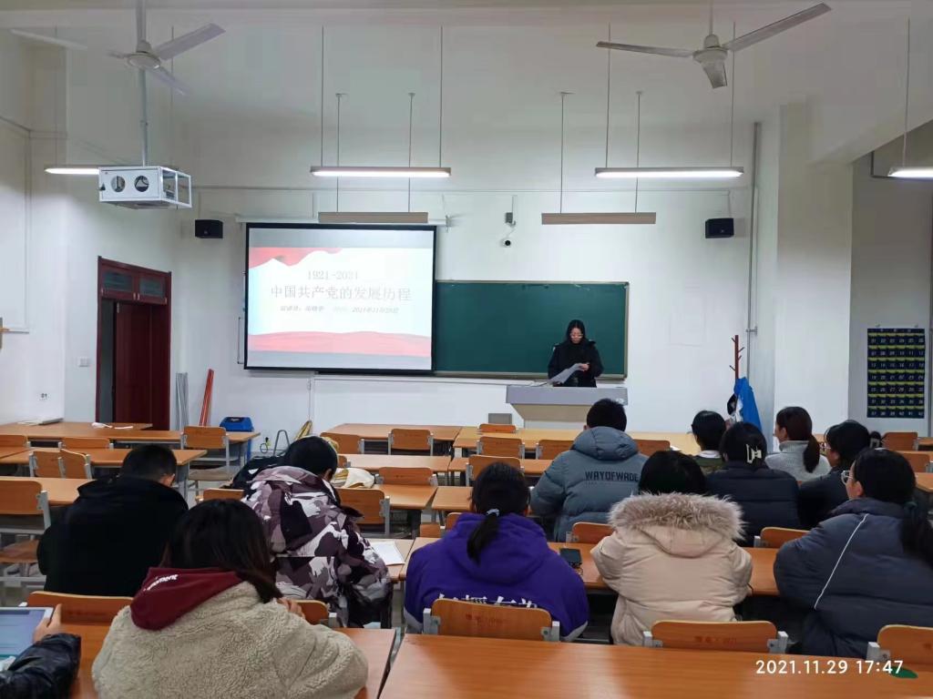 为进一步增强大家对中国共产党发展历史的了解,激发爱党爱国热情,营造全面深入开展党史学习教育的浓厚氛围,物电学院于11月29日开展关于党史学习教育宣讲活动,此次活动由德州学院党史知识教育宣讲团成员高晓宇主持召开,2020级各班班干部参加此次活动。
