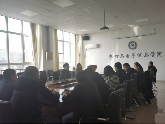 物电学院主要负责人首先对学院现阶段的准备工作进行了详细的汇报,主要包括人才引进工作进度,对照申硕要求人才引进的下一步工作计划与努力方向;骨干教师与专任教师发展现状,对照申硕骨干教师与专任教师发展与培养的努力方向等。同时唐延柯院长表示,物电学院正在对照申硕指标进行全面整改完善,虽然相关工作仍然存在一定差距,但学院将集合全院老师的力量,拼时间,拼资源去完成学校给予的既定任务。