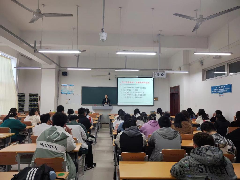交流会上,李老师从“考研or就业”话题引入,向同学们分析了学习深造的重要性,围绕“最新考研形势与考情分析”和“专业院校深度解析”两方面,为学生详细地介绍了热门专业院校报录比、研究生考试科目、历年分数线和各院校对于研究生的各种优惠政策。李老师指出,考研既是物电学院全力推进的一项重要工作,更是同学们成长路上的一件大事,大家要坚持到底,做到中途不掉队、不妥协、不放弃。