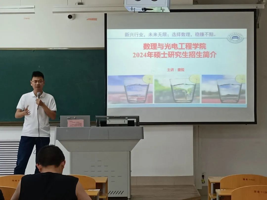 为搭建考研学子与考研院校沟通桥梁,帮助学生深入了解研究生培养情况和研招政策,推动高质量就业,物电学院于6月21日邀请湖北汽车工程学院童锐教授在明理楼召开2024级硕士研究生招生宣讲会,2020级学生参加。