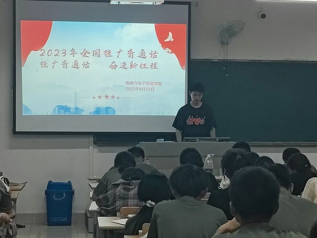 2023年9月11日至17日是全国第26届推广普通话宣传周,为深入学习宣传贯彻党的二十大精神和习近平总书记关于语言文化的重要指示批示精神,推动新时代语言文字事业高质量发展,9月13日,物电学院开展“推广普通话,奋进新征程”主题宣讲活动。