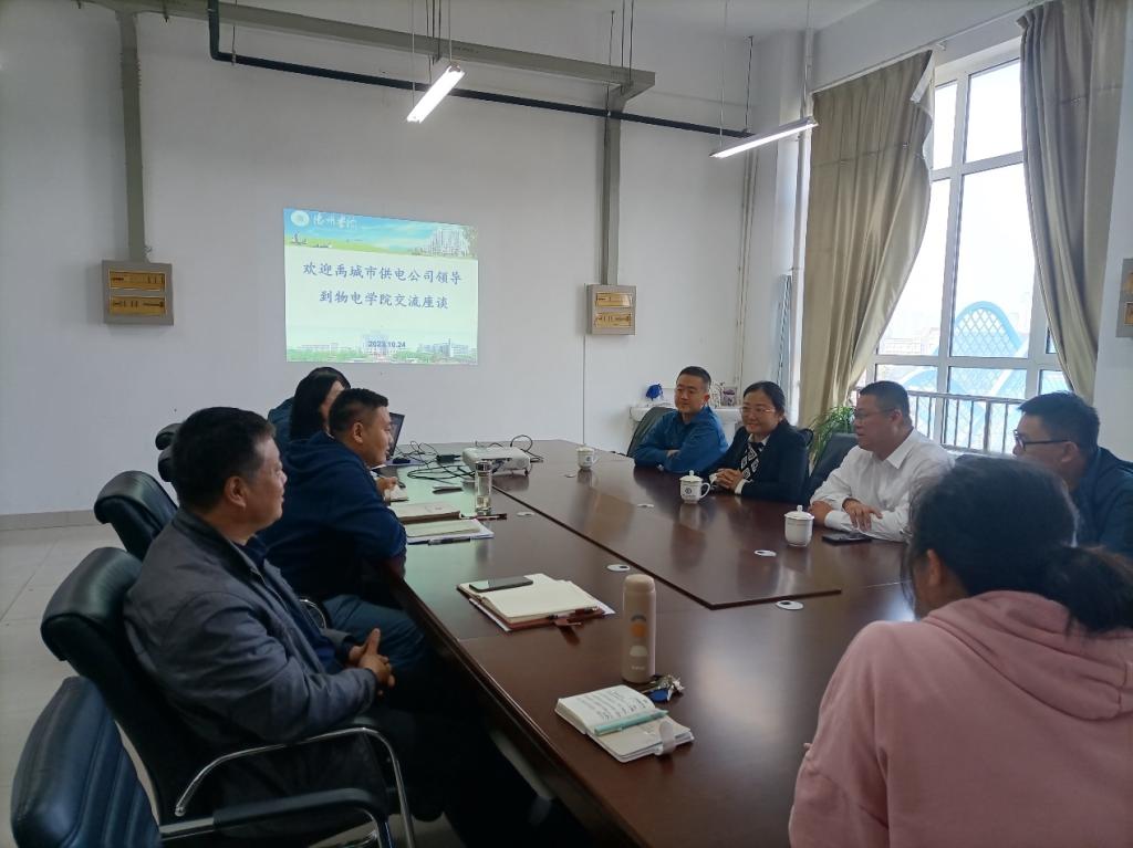 此次调研走访中双方首先在启智楼0410会议室进行了洽谈,在简介绍了各自单位的具体情况后双方针对创新合作等事宜进行了协商,整个过程顺利愉快并达成初步合作意向。然后,物电学院主要负责人陪同禹城市供电公司专家参观了院系实验室,进一步加深了彼此了解。