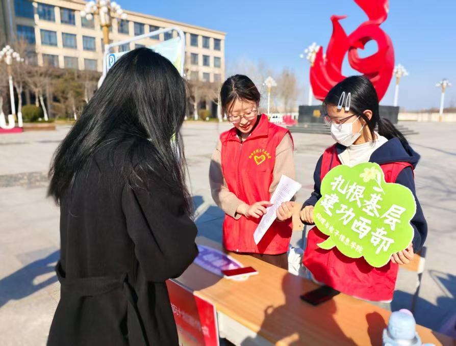 为做好西部计划志愿者招募工作,引导广大青年学生用实际行动践行“到西部去,到基层去,到祖国最需要的地方去”的号召,3月19日下午,物电学院在腾飞广场举办“以青春之名,奔赴西部之约”西部计划流动宣传驿站活动。