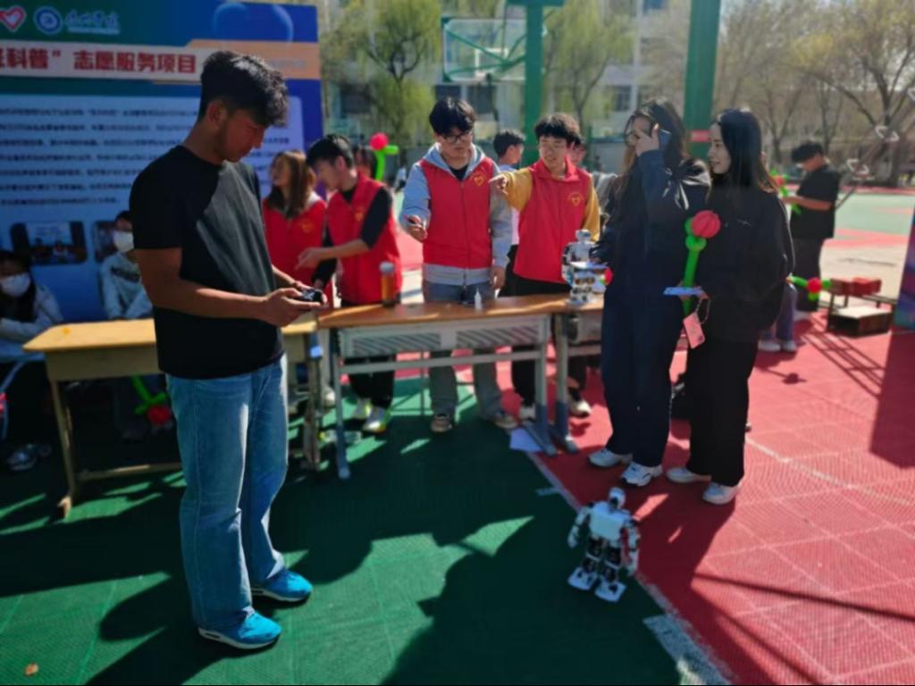 活动现场,物电学院“星光”科普志愿服务队以“科技助公益”为主题,现场展示了智能机器人互动演示,吸引了众多师生驻足体验。机器人灵活的动作和志愿者们的趣味科普讲解,将科技与公益结合,传递了创新服务的理念。活动还巧妙融入志愿服务知识问答环节,增加了活动的趣味性,也激发了大家的参与热情,营造了浓厚的志愿服务氛围。