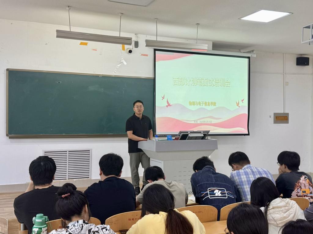为助力有志投身西部建设的同学们深入了解西部计划,系统掌握笔面试技巧,提升应试竞争力,5月15日,物电学院在明理楼0126教室开展西部计划笔面试专题培训会。