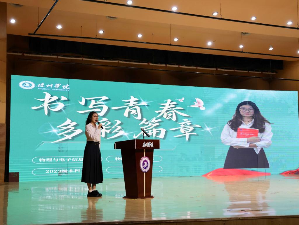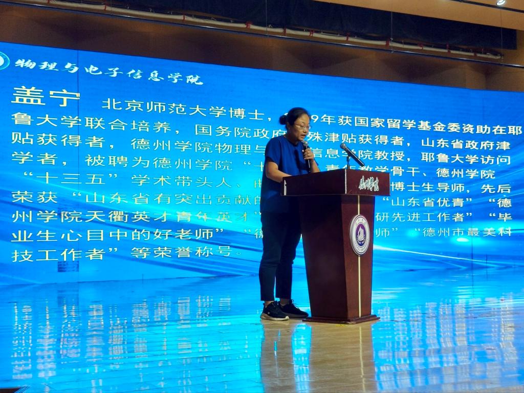 “如何做有责任担当、有家国情怀的新时代大学生?”国务院政府特殊津贴、山东省政府特殊津贴、山东省有突出贡献的中青年专家、德州市“最美科技工作者”盖宁教授向新生分享了自己的成长经历和教学经验,解读物理与电子信息领域的重要性,强调其推动科技革命与产业变革,并对新生提出五点期望:一是以大学为新起点,学会独立;二是胸怀担当与家国情怀,将个人成长与国家需要相连;三是勇于探索未知、突破认知;四是以实践与创新为成长钥匙;五是肩负责任使命,成为时代所需人才,助力新生明确成长方向。