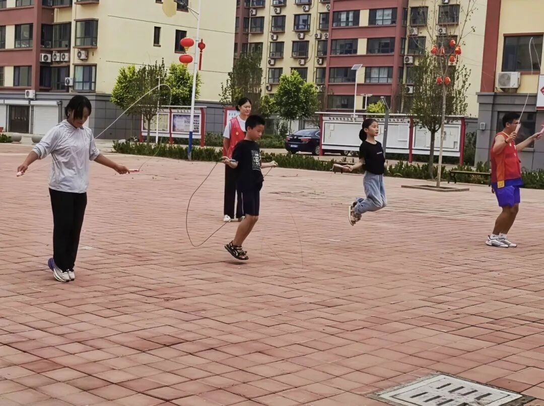 活动首站聚焦武城县老城镇党群服务中心。队员们秉承“以趣启智、以动育人”的理念,巧妙融合科学理论与动手实践,为社区儿童量身打造了一系列寓教于乐的互动体验。在跳绳接力环节,志愿者深入浅出地阐释了其中的力学原理,并悉心指导孩子们运用屈膝缓冲技巧以减轻膝部负荷。背对背夹球跑项目则融入了物理平衡知识,志愿者以航天器精密对接为喻,引导参与者通过调整重心提升协作效能,最终角逐出用时最短的“最佳协作组”。击鼓传花游戏中,伴随紧张鼓点,孩子们专注传递花束;鼓声骤停时,在志愿者温和的鼓励下,孩子们勇敢展示才艺,于互动中逐步树立自信心。通过全程的温情陪伴与专业引导,活动有效实现了“学有所教、困有所帮、爱有所依”的目标,为孩子们创造了精彩难忘的假期记忆。