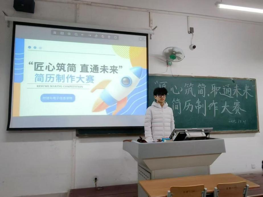 本次比赛秉持“以赛促学、以赛促练”理念,聚焦理工科学生求职需求,明确要求参赛简历为A4尺寸原创作品,涵盖个人基本信息、学业经历、实践成果及专业专长等核心内容。选手们将对未来的期许融入每一处创作细节:紧扣职业定位与岗位需求,系统梳理学业成果与实践经历,精准提炼专业核心技能与岗位适配优势。选手们在创作中展现的不仅是简历制作的实用技巧,更传递出新时代青年学子主动对接职场、积极规划未来的进取意识,彰显了物电学子扎实的专业功底、精益求精的工匠精神与勇于展现自我的自信姿态。为客观评价选手综合表现,评委团结合简历内容完整性、重点突出度、逻辑清晰度及现场表达能力,严格依据评分细则评选出各类奖项。