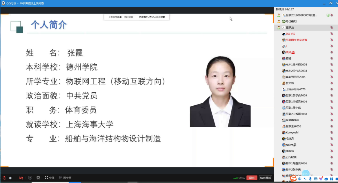 本次活动由张秀梅老师主持,邀请了2023届电子信息工程专业的董承龙、物联网工程专业的张霞两位同学进行实践素质提升、考研复试面试经验分享。