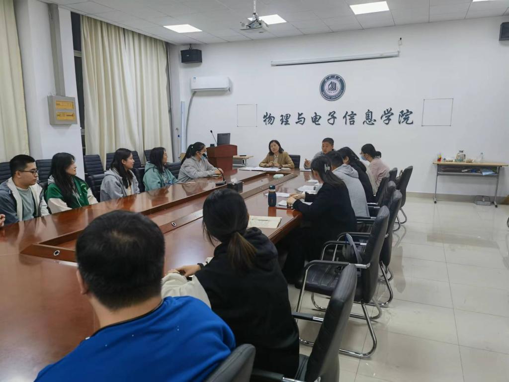 物电学院院长引导学生要正确认识考研形势,鼓励学生明确考研目标,增强考研信心,确定考研目标,脚踏实地,做好学习计划,坚持不懈。分管教学副院长介绍了学院2022届毕业生的考研情况,并对研究生报考率和考研率进行了详细分析,结合考研情况提出树立目标的重要性,指出大家要结合自身实际,合理定位,并要充分利用学校学院资源,积极备考。