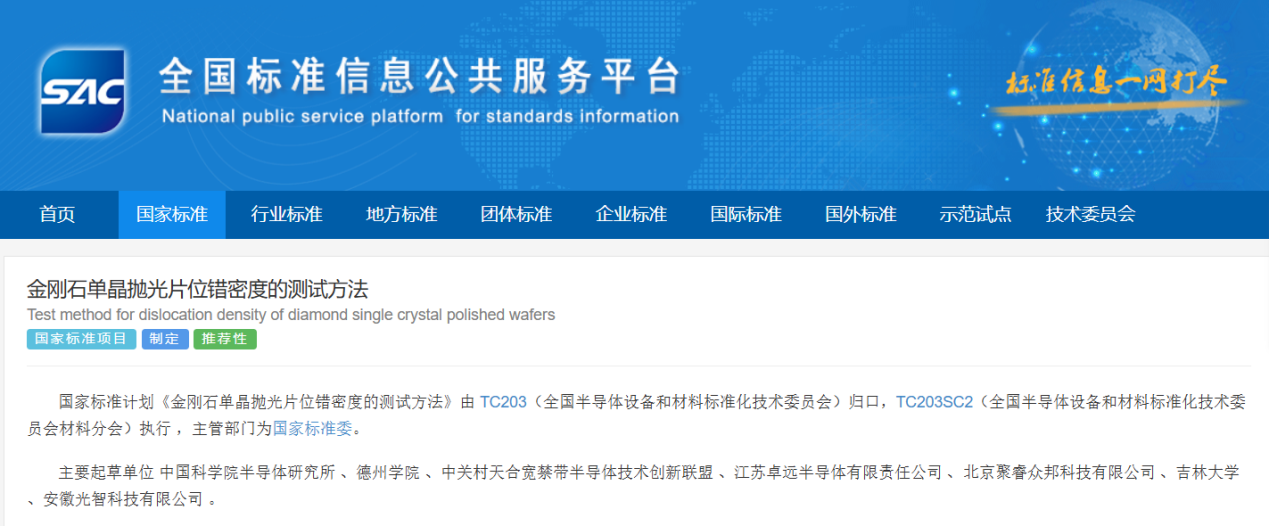 另外,霍晓迪教师参与起草的两项关于半导体金刚石的团体标准 T/IAWBS 018-2022和T/IAWBS 017-2022也相继发布实施。