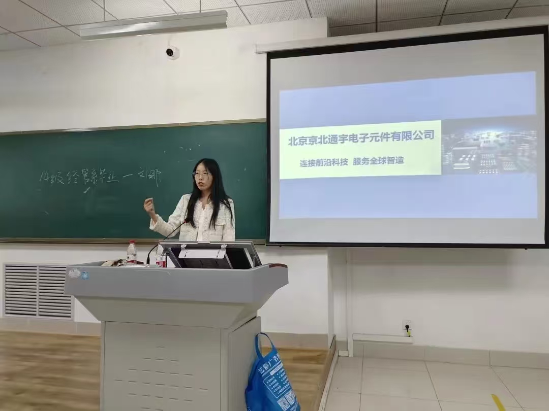 本次招聘会得到了北京京北通宇电子元件有限公司、山东分公司、济南分公司、深圳分公司、青岛分公的大力支持。宣讲会前,学院与公司充分沟通,明确公司所需人才方向,同时分享学院专业优势及重点培养领域技术,以便学生选择适合职业,企业挑选适配学生。会上,企业向学生详细介绍发展历程、社会贡献、核心价值观、企业精神、企业文化及所需人才等方面,使学生各公司有了更深入认识。企业介绍完毕后,学生明确未来定位及奋斗目标,纷纷向宣讲会负责人投递简历,期望为企业和社会贡献力量。