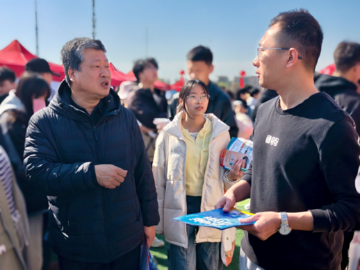 招聘会现场,各企业精心布置展位,充分展现自身特色。学院领导班子践行“深化校企合作、精准对接需求”的工作理念,分别带领一队毕业生,深入各展台与企业代表展开深入洽谈,并积极推荐我院各专业优秀毕业生。在交流过程中,学院领导系统介绍了物电学院的学科优势与人才培养特色,就企业招聘需求及毕业生表现进行动态反馈,进一步提升了校企对接效率与就业服务精准度。双方就深化产教融合、建立实习就业基地等事项达成初步共识,共同致力于为学生搭建更广阔的职业发展平台。
