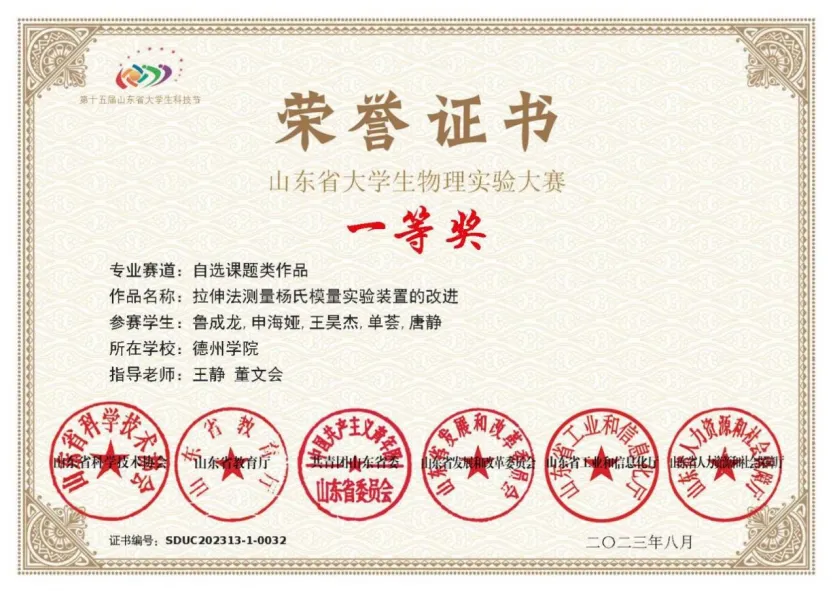 申海娅,女,共青团员,蓝莓视频物理学(师范类)专业2021级本科生。担任班级心理委员。连续两年专业成绩、综合素质测评成绩均位列专业第一,曾获2021-2022、2022-2023学年的优秀大学生奖学金、综合一等奖学金以及三好学生称号。自2021年入学以来,便积极参与各种科技竞赛以及科学研究活动,获得省级、校级奖项十余项,目前申请并主持的创新创业项目已获得国家级立项,支持经费20000元。
