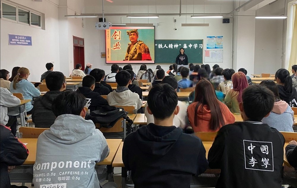 辛叶璇同学讲述了王进喜同志励志事迹与铁人精神,与同学们分享了王进喜同志的名言,激励同学们向王进喜同志看齐,学习王进喜同志的拼搏奋斗精神。辛叶璇同学还强调铁人王进喜,是中国工人阶级的光辉形象,是中国共产党的优秀党员,是顶天立地的民族英雄。今天,我们向铁人王进喜学习,对于我们更好地继承和弘扬大庆精神铁人精神,积极地推进社会主义核心价值体系建设,提高自身的思想觉悟具有十分重要的意义。会后,同学们纷纷表示倍受鼓舞,表示将以王进喜为榜样学习奋斗。