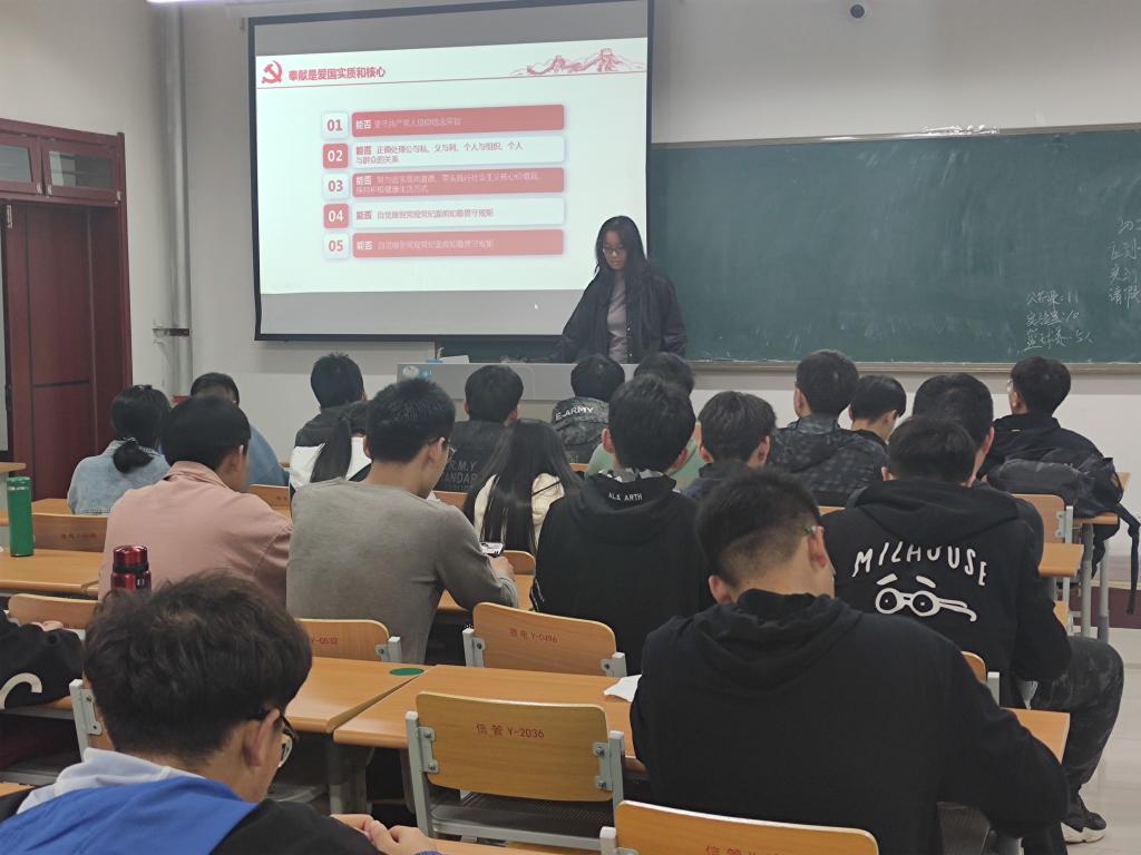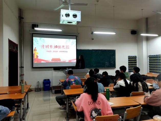 活动伊始,班级团支书向大家介绍了清明节的由来,之后通过播放一段红色经典视频,大家了解了那些革命先烈们为人民的幸福,民族的解放和国家的富强做出的牺牲和努力。最后,通过观看习近平总书记的讲话视频,更进一步激发大家的爱国情怀。