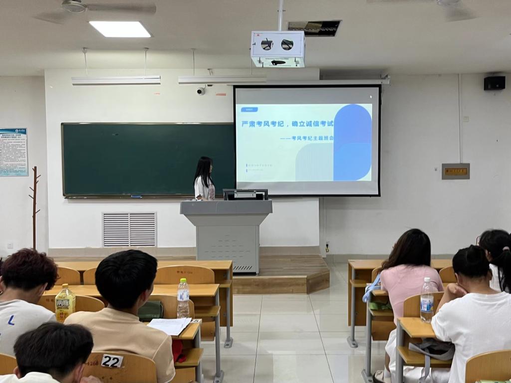 会上,老师从考试的要求、前期准备以及违纪考试处分规定等内容进行了重点讲解,宣读了诚信考试承诺书,提醒同学们要端正学习态度,积极投入到复习中,自觉遵守考试纪律,促进公平公正良好考试氛围的形成。