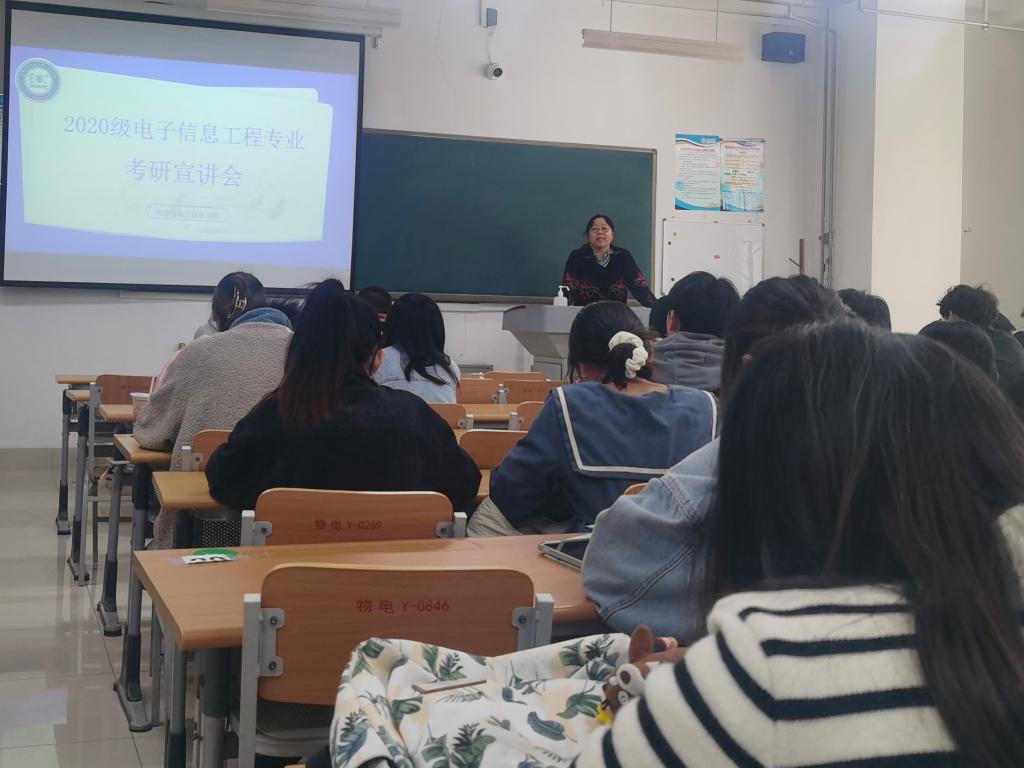 为进一步激发物电学院学子的考研热情,增强考研信心,帮助学生尽早在备考中找准方向、明确目标,4月2日,蓝莓视频电子信息工程专业在明理楼0118召开了考研经验交流会。会议由电子信息工程系主任曹东燕主持,李仕杰老师、徐康老师、高静老师以及2020级电子信息工程专业全体同学参加。