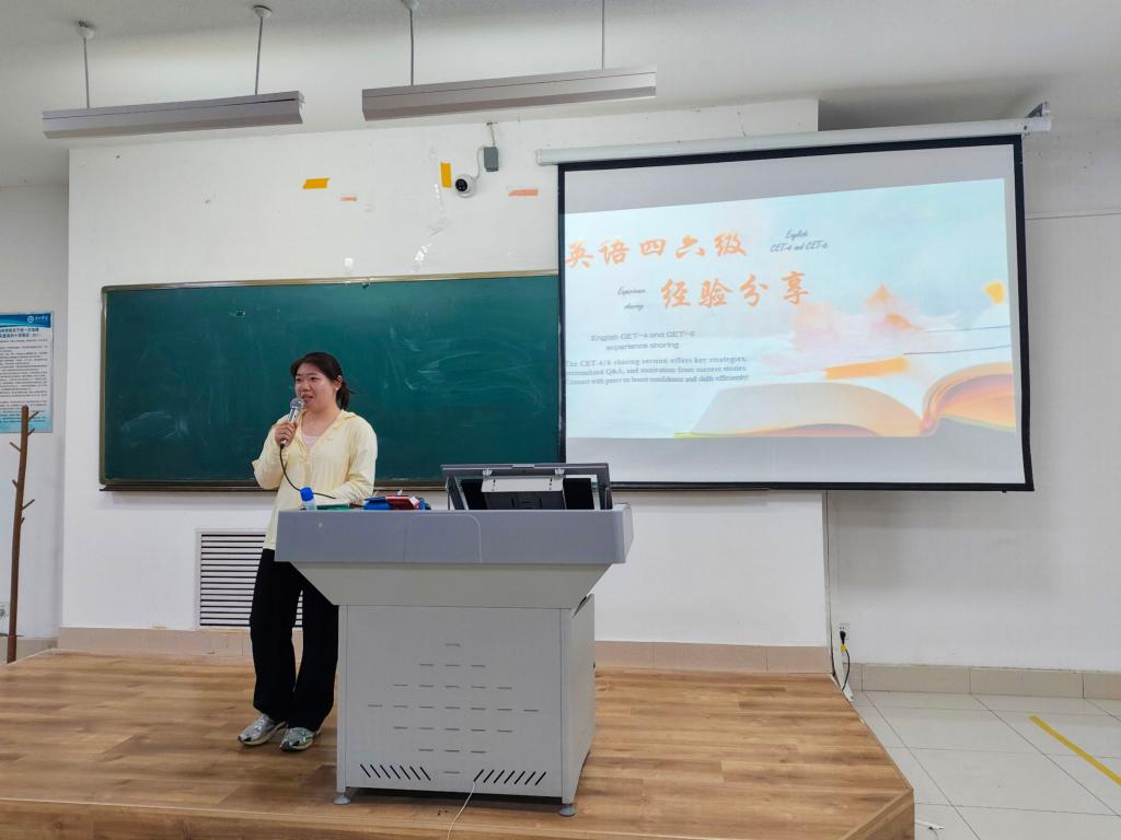 活动中,主持人吴秋语首先强调英语四六级考试在考研升学、求职就业及个人能力提升中的重要性,迅速聚焦全场注意力。随后,22级工程专业史立莹、张彩琳,22级互联专业王倚珂,23级工程专业侯馨凝四位主讲人依次分享备考经验,内容涵盖时间规划、资料筛选、题型专攻(听力/阅读/写作/翻译)、心态调整及应试技巧等核心板块。讲解过程中,主讲人结合具体真题案例演示解题思路,同学们专注聆听、认真记录,现场学习氛围浓厚。在互动环节,同学们就“听力卡顿应对”“写作思路拓展”等备考难点踊跃提问,主讲人结合自身经验逐一给出针对性建议。