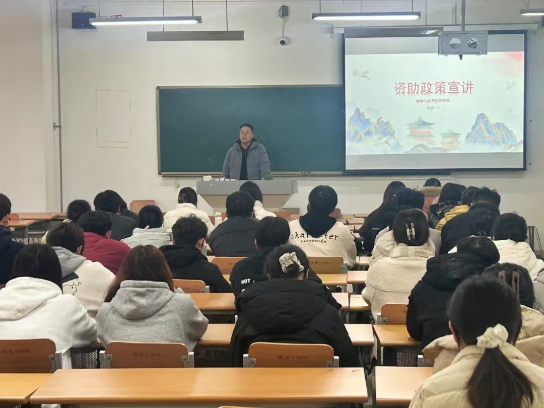 为更好地贯彻落实高校资助政策,培养我院受助学生自立自强、诚实守信、知恩感恩、敢于担当的优良品质,11月25日,物电学院于明理楼215教室开展国家资助政策宣讲活动,辅导员赵剑桥主讲。