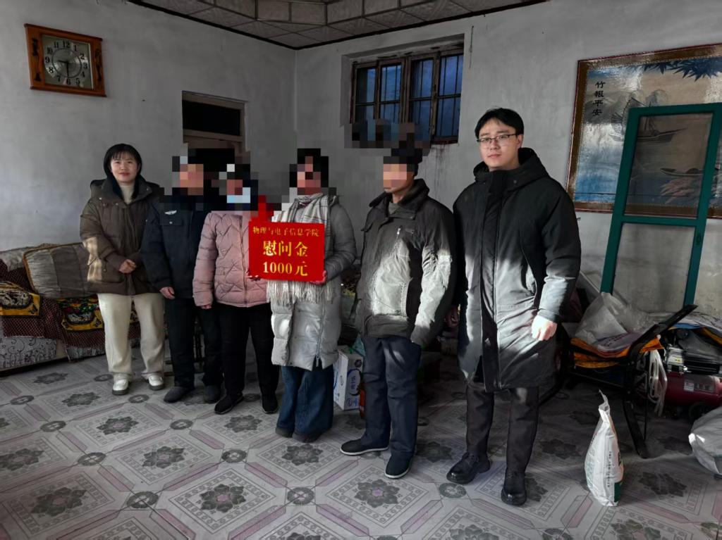 为深入落实高校家庭经济困难学生资助政策,进一步强化家校协同育人合力,1月14日,物电学院开展“筑梦育人 有爱相伴”家访活动,学院相关负责人带领全体辅导员分别奔赴菏泽成武、济宁金乡、聊城高唐等5地进行走访慰问,为困难学生家庭送去生活物资及新春祝福。