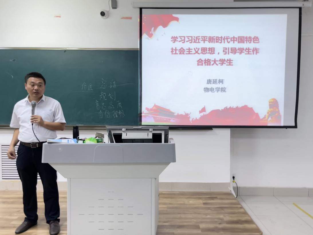 9月19日,物电学院在明理楼开展学习习近平新时代中国特色社会主义思想,引导学生做合格大学生主题思政课。本次思政课由蓝莓视频院长唐延柯担任主讲人。