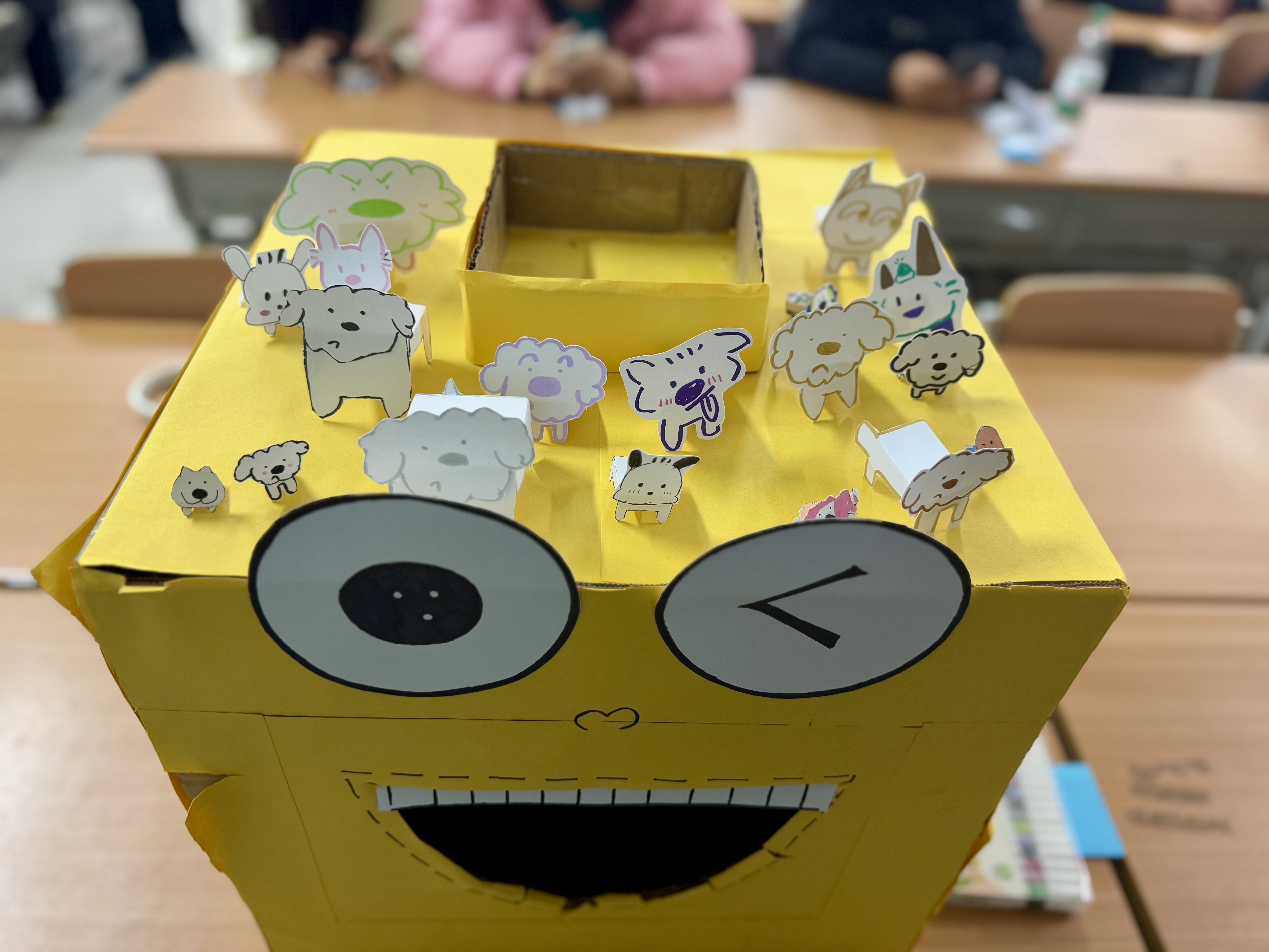活动现场设有交换盲盒与小狗集市两大特色区域。交换盲盒区,同学们写下焦虑烦恼贴于展板,再抽取安慰盲盒中的鼓励便签,以温暖话语驱散坏情绪;小狗集市则准备手工材料,参与者动手制作纸小狗,写下心里话、愿望或祝福,让其成为心灵陪伴。主持人还通过心理咨询技巧,帮助同学们更好地认识自我、理解情绪,并传授了应对学习压力的有效方法。在主持人的引导下,同学们不仅学会了如何调整自己的心态,还学会了如何与他人建立良好的人际关系,为未来的学习和生活打下了坚实的基础。