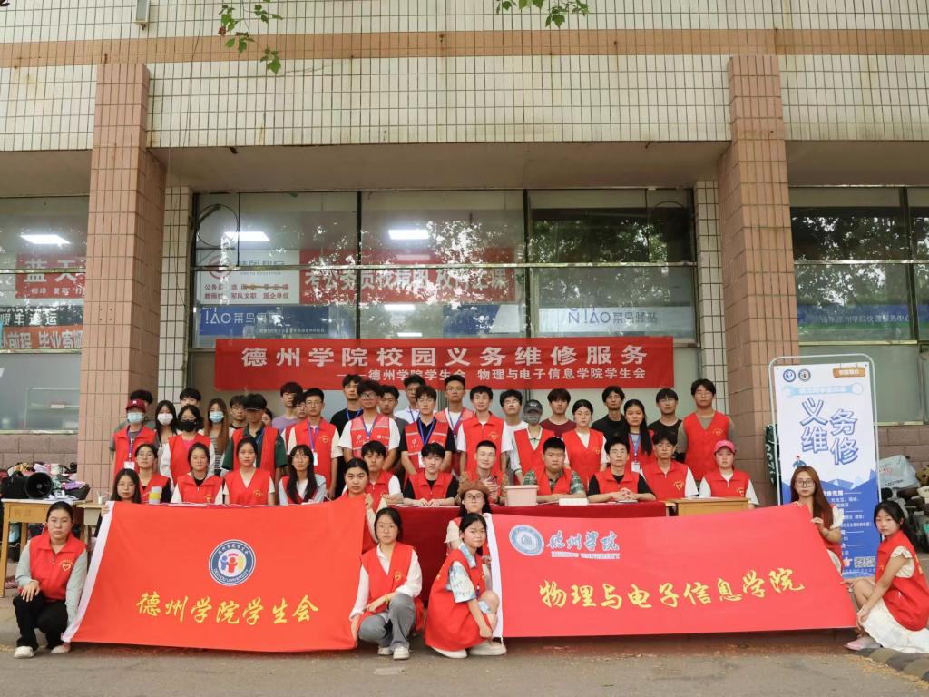 为弘扬志愿服务精神,充分发挥专业优势,提高学生社会实践和动手操作能力,展现德州学院学子的社会责任感,6月11日,物电学院联合德州学院校学生会于三餐附近开展了一次校园义务维修活动。