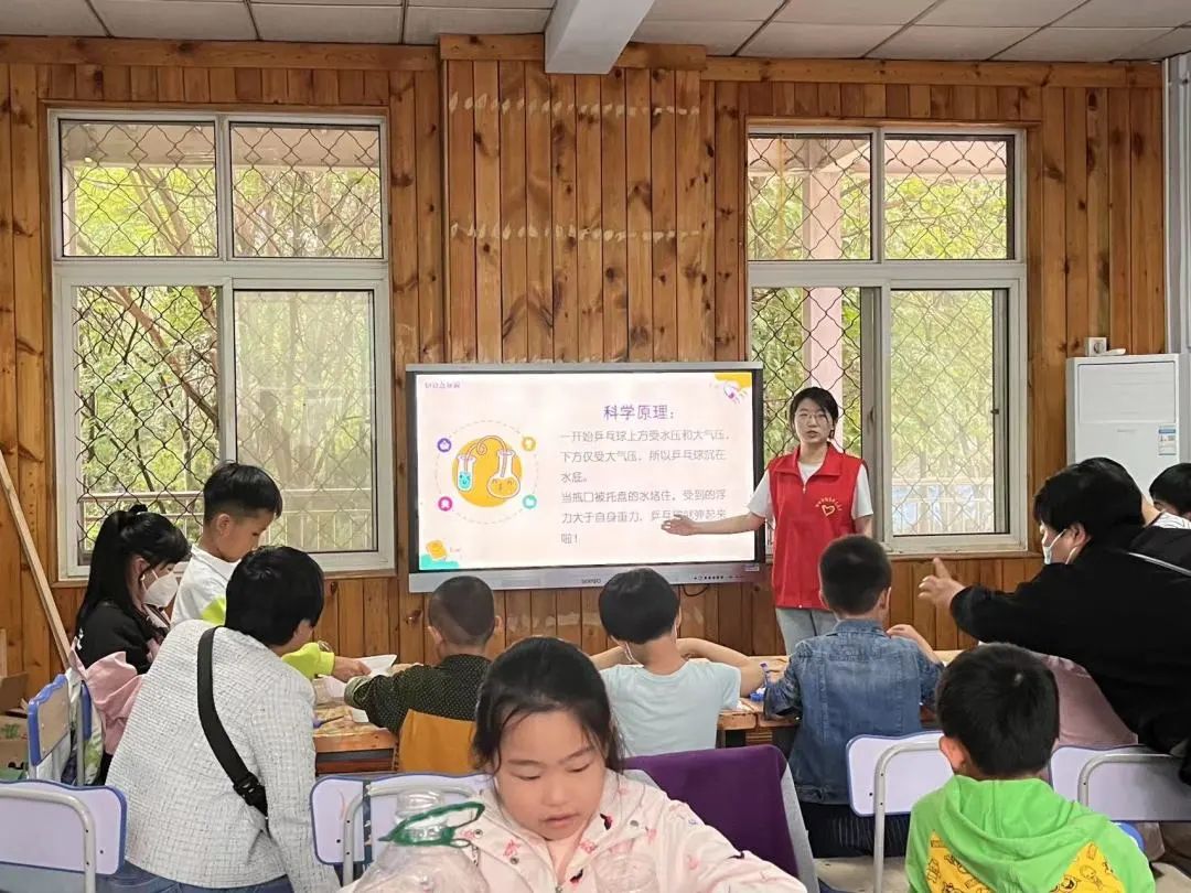 活动中,志愿者通过演示生动形象的实验,让同学们感受到科学的神奇之处。志愿者通过讲述小实验的原理,并带领着同学们自己动手做实验,让同学们在实际动手操作中,更加进一步理解科学的奥秘。