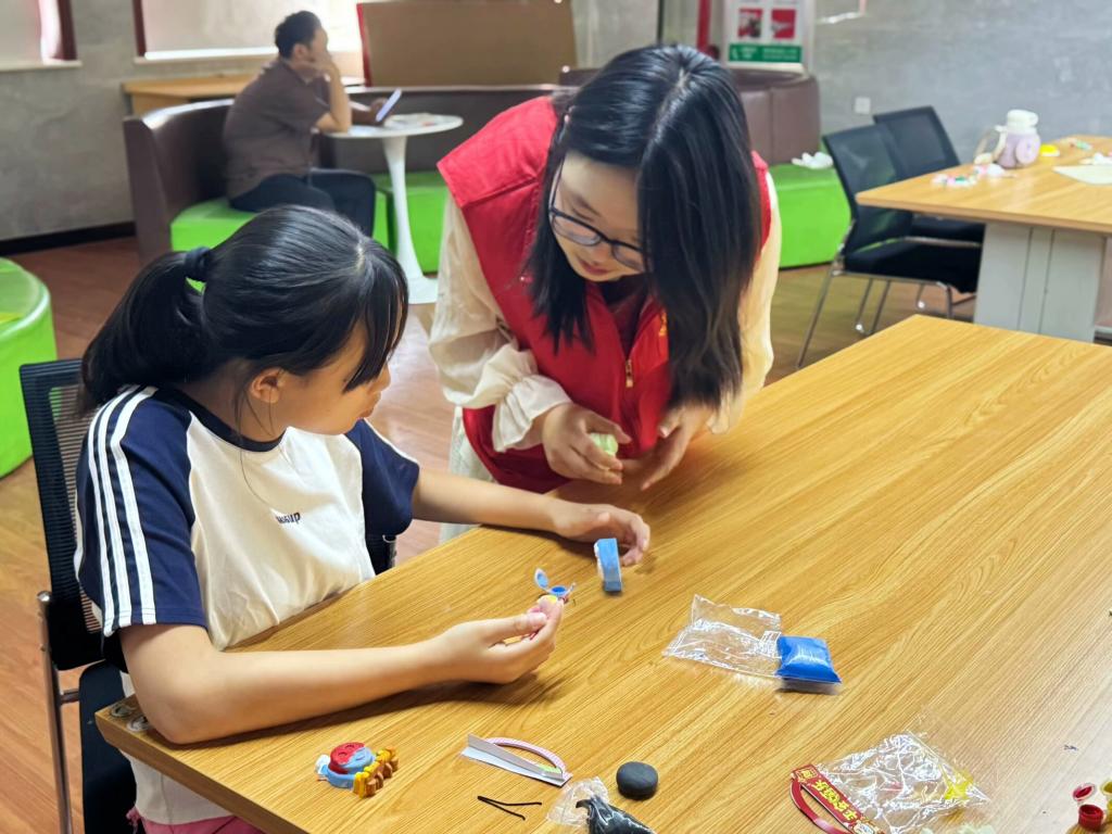 活动中,志愿者们秉持着“奉献、友爱、互助、进步”的志愿服务理念,通过一对一沟通的方式,悉心了解特殊儿童的学习和生活状况,用耐心和爱心打开孩子们的心扉。随后,志愿者带领孩子们参与橡皮泥创意塑形、石膏娃娃彩绘等手工课程,通过寓教于乐的形式,激发孩子们的想象力与创造力,助力他们在实践中获得成长与快乐。最后,志愿者通过分享励志故事,与孩子们深入交流,引导他们树立“自尊、自信、自强、自立”的人生信念,激励他们积极面对生活与学习中的挑战。