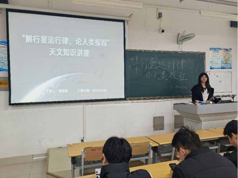 为拓宽学生天文知识视野,培育科学探索精神,激发对宇宙星辰的探索热忱,11月29日,物电学院天文爱好者协会在明理楼118教室开展“解行星运行律,论人类探程”主题讲座活动。