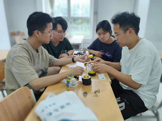 在“理论基础知识考核”环节,参赛队伍进行理论基础知识培训后,进行培训成果考核,通过考核循迹小车、电子元件等理论知识,最终决出进入决赛的7支队伍。