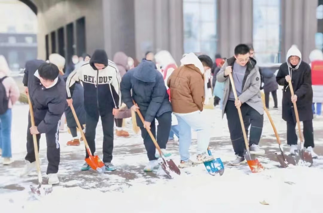 在学院领导的带领下,师生们积极投身扫雪一线,清扫被积雪覆盖的路面。虽然寒风凛冽,但大家精神饱满、干劲十足,他们挥动铁锨、雪铲,分工明确、配合默契、互相帮助。经过奋力清扫,教学楼前积雪基本被清理干净,道路变得安全畅通,为师生安全出行带来了便捷。