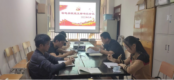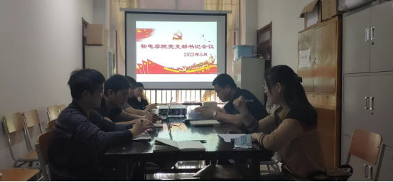 2022年5月3日,物电学院党支部书记5月工作会议在明理楼0219会议室召开。党委副书记申青林主持本次会议,党委组织员纪芳及物电学院各支部书记参加会议。