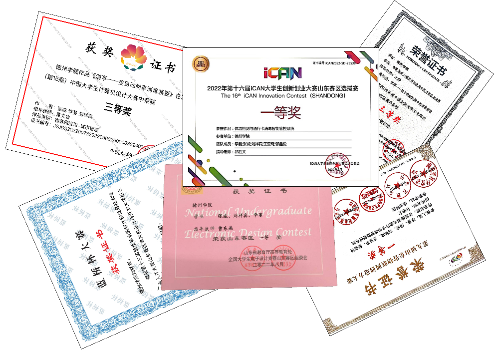 刘祥宾同学深知,竞赛是检验学习的试金石,更是通向就业的桥梁。他积极参与各类高水平学科竞赛,将课堂所学灵活应用于解决实际问题之中,在实战的磨砺中不断深化对专业理论的理解与掌握。例如:在全国大学生电子设计竞赛中,他运用单片机与传感器技术完成智能控制系统,荣获省级一等奖;在备受瞩目的iCAN大学生创新创业大赛中,他巧妙地将物联网技术与商业场景结合,荣获了省级一等奖,展现了其创新思维和实践能力。